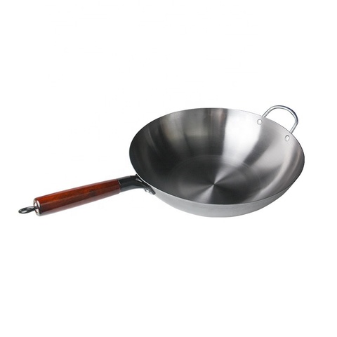 ครัวเรือน 304 สแตนเลสกระทะน้ํามันร้อนไม้จับกระทะสาดขนาดเล็ก